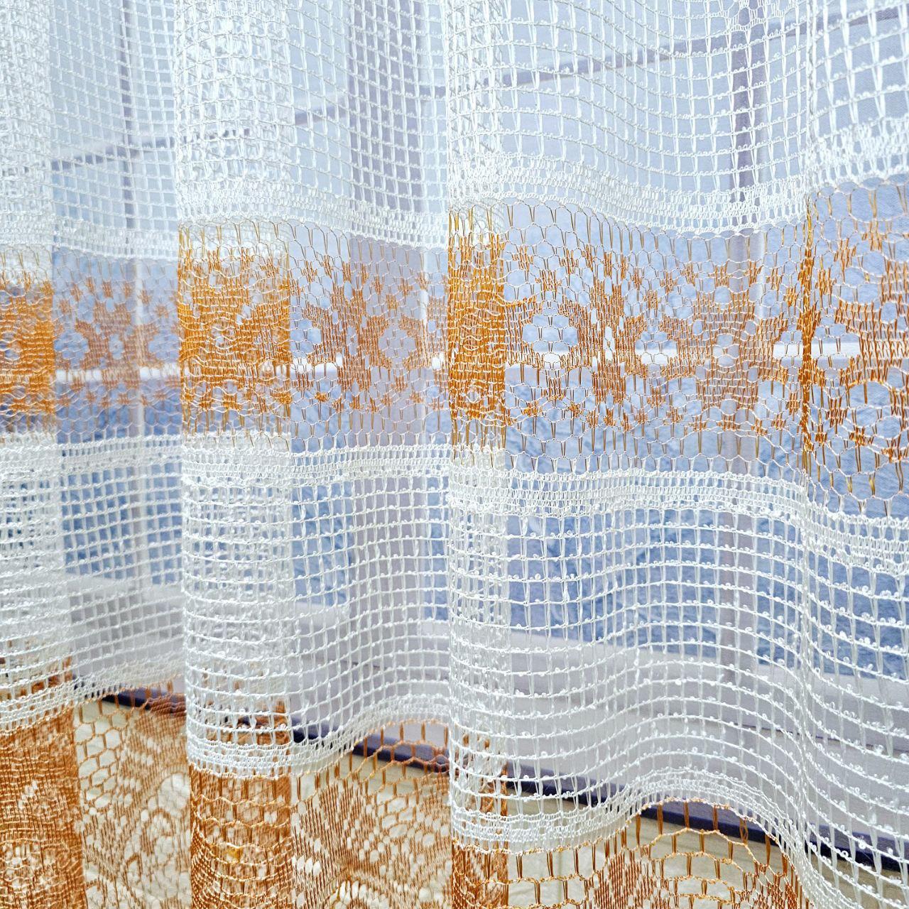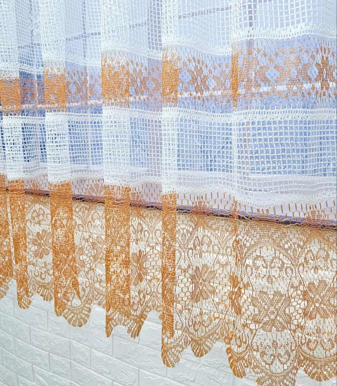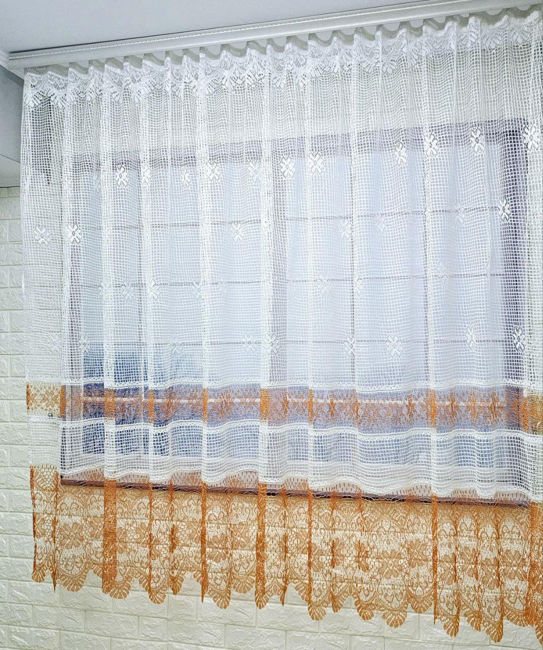 Короткий тюль. Цвет ванильный с коричневым. Тюль на кухню, балкон, веранду, дачу. Высота 1,6м
