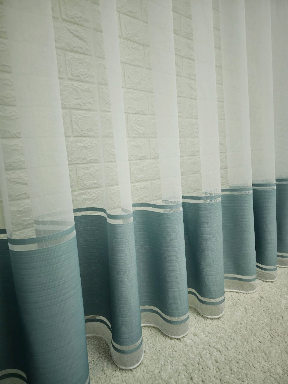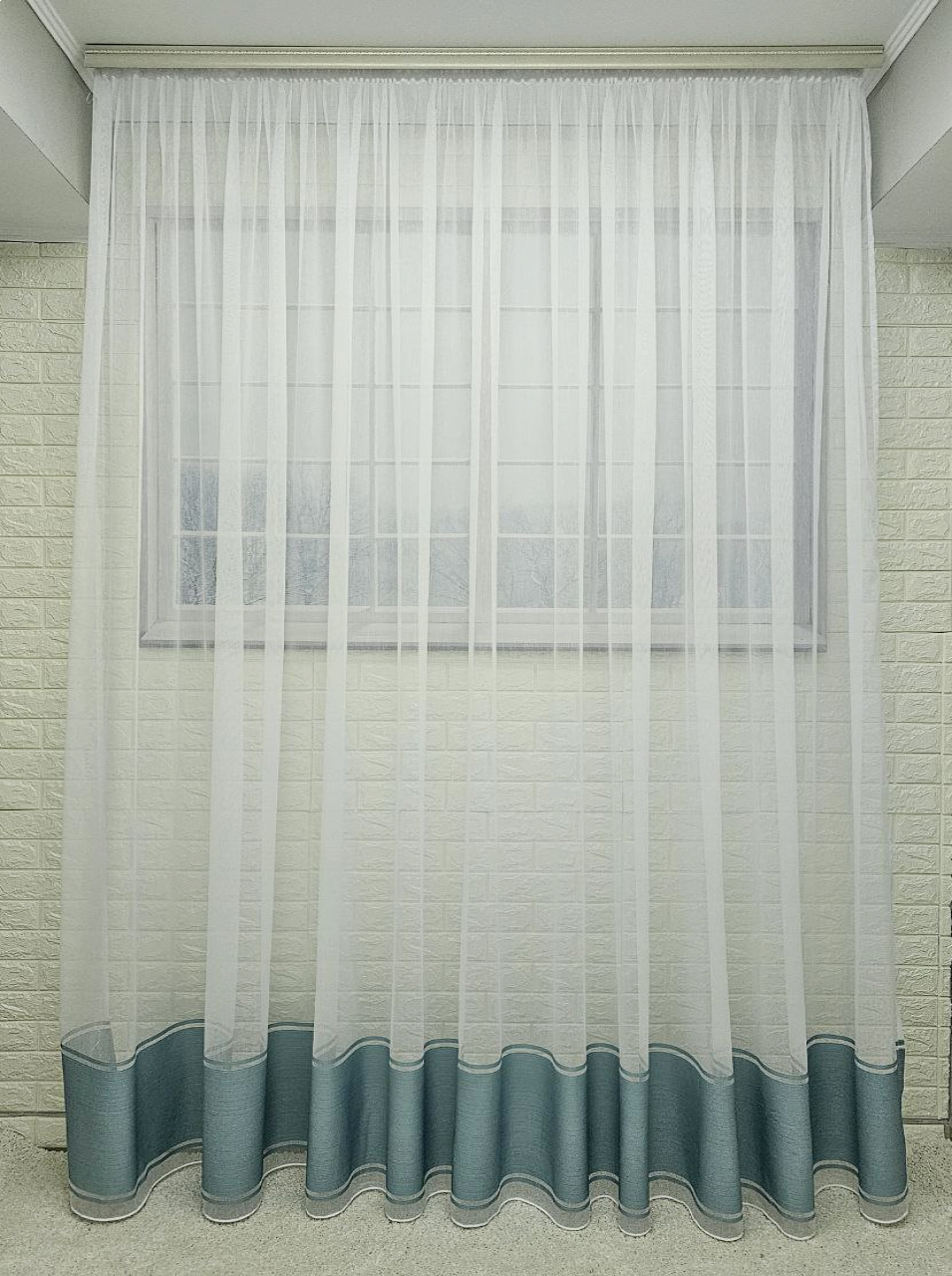 Тюль бамбук с полосой по низу, с утяжелителем (Турция). Цвет белый с бирюзовым