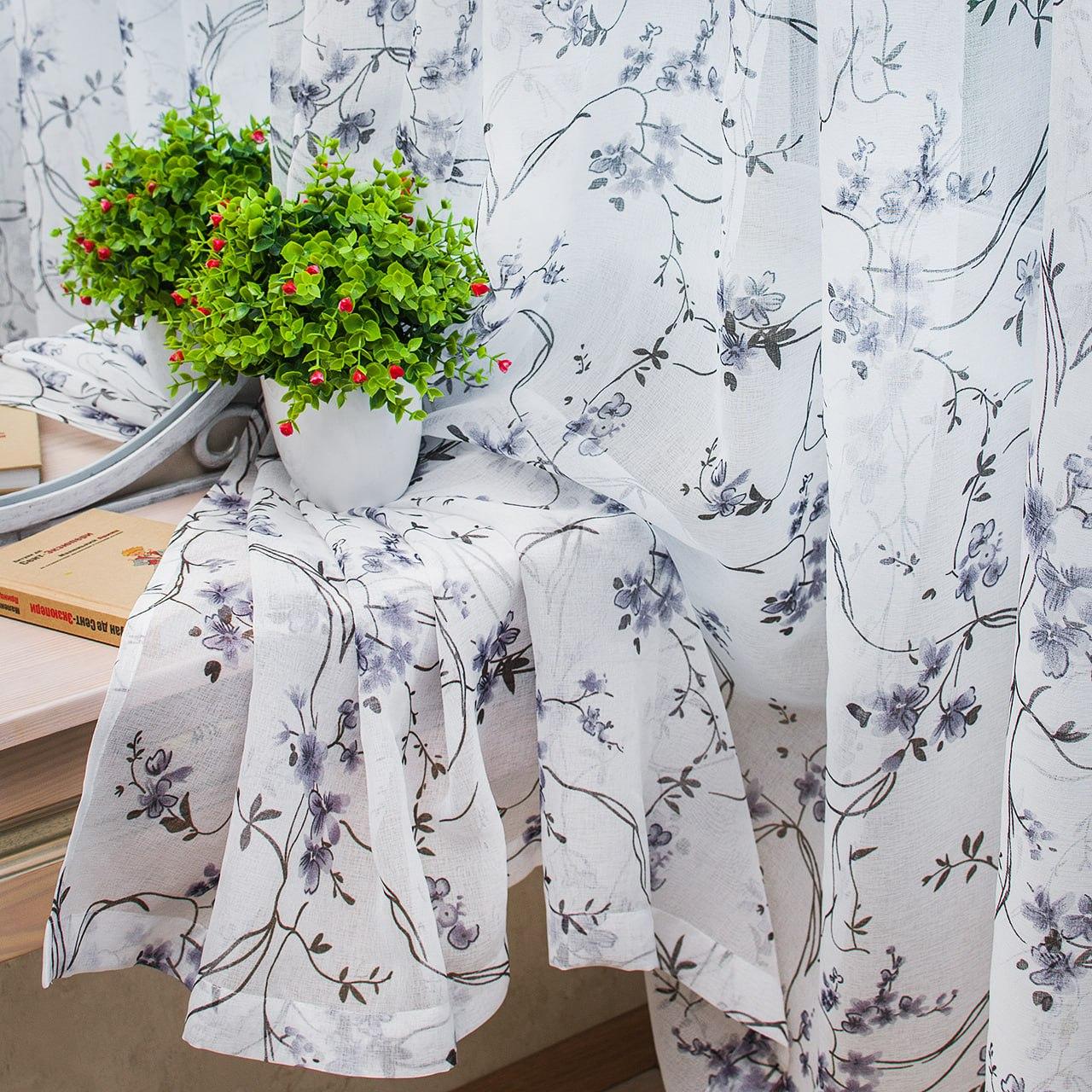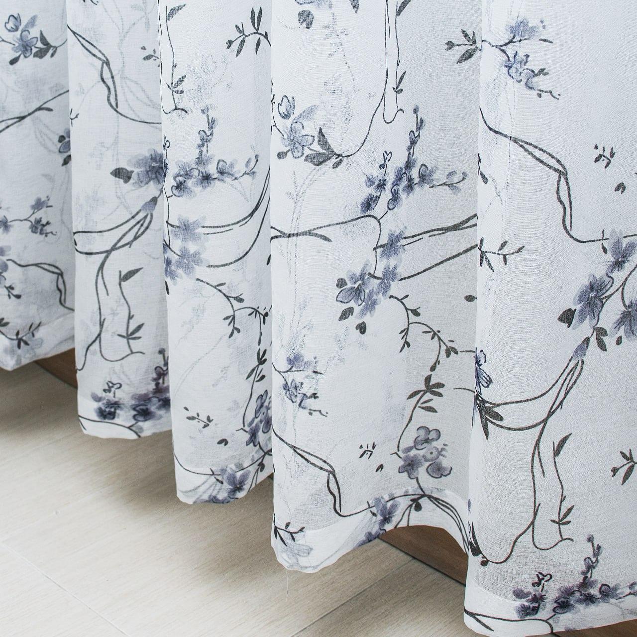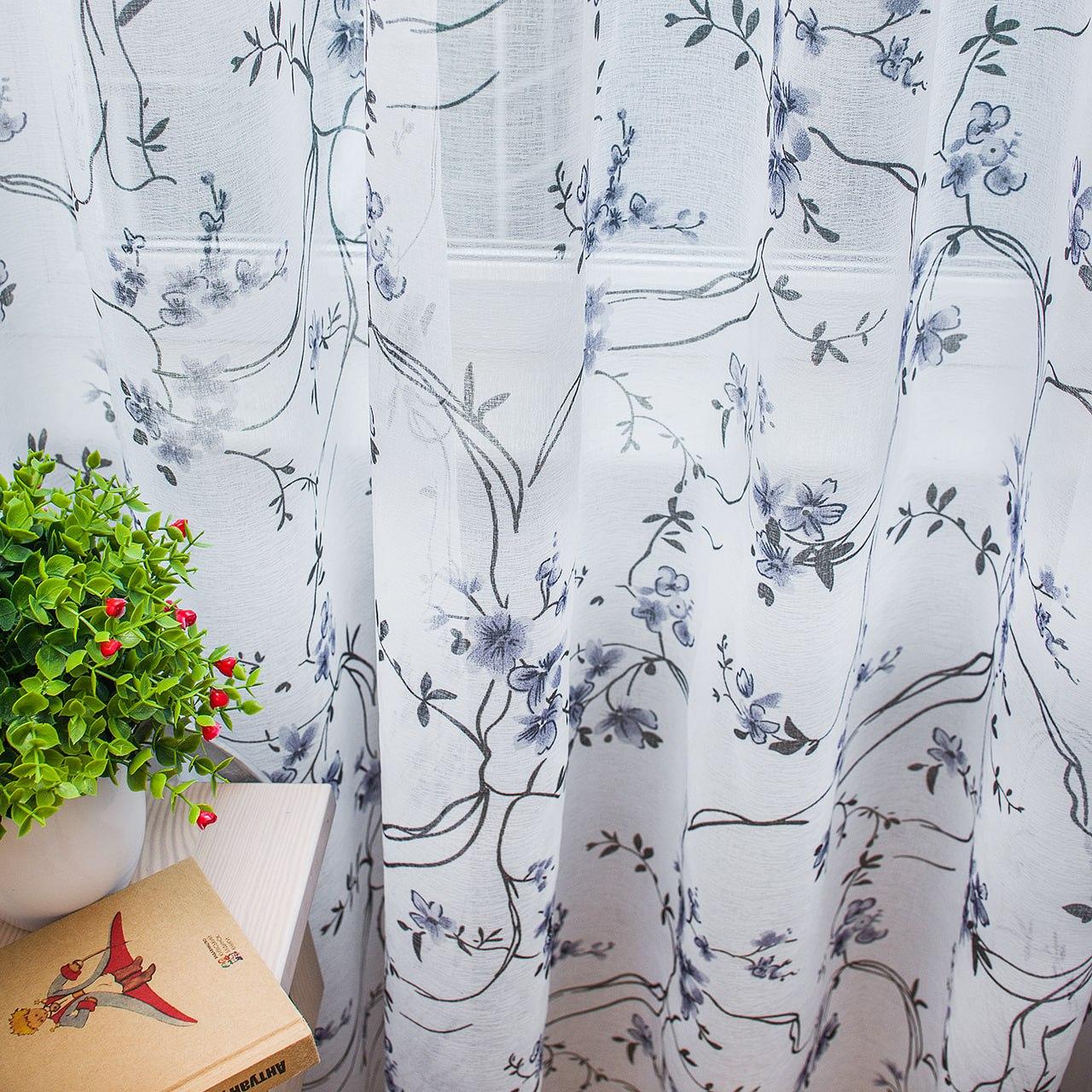 Тюль лен Прованс. Цвет белый с сине-черным
