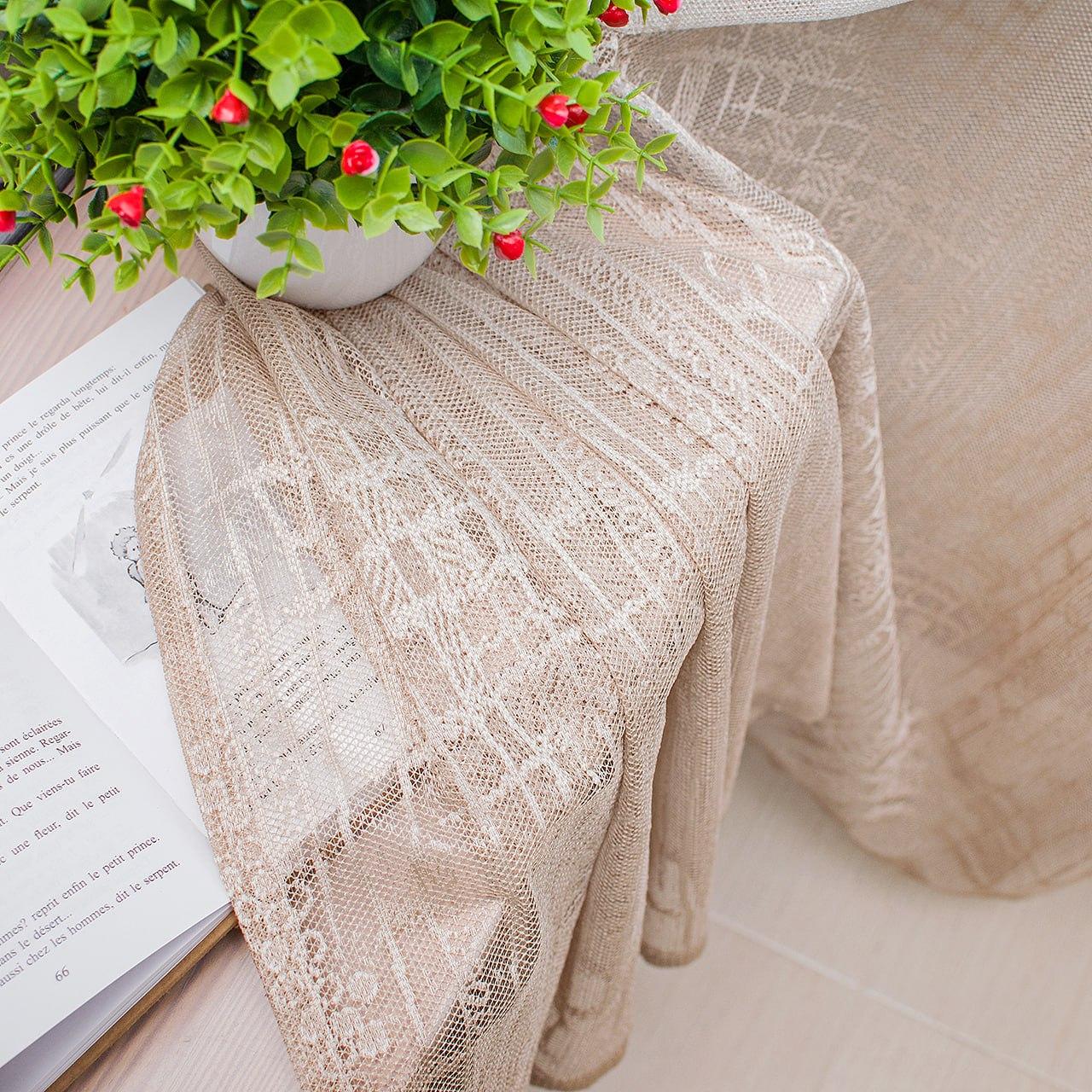 Тюль жаккард. Цвет бежевый