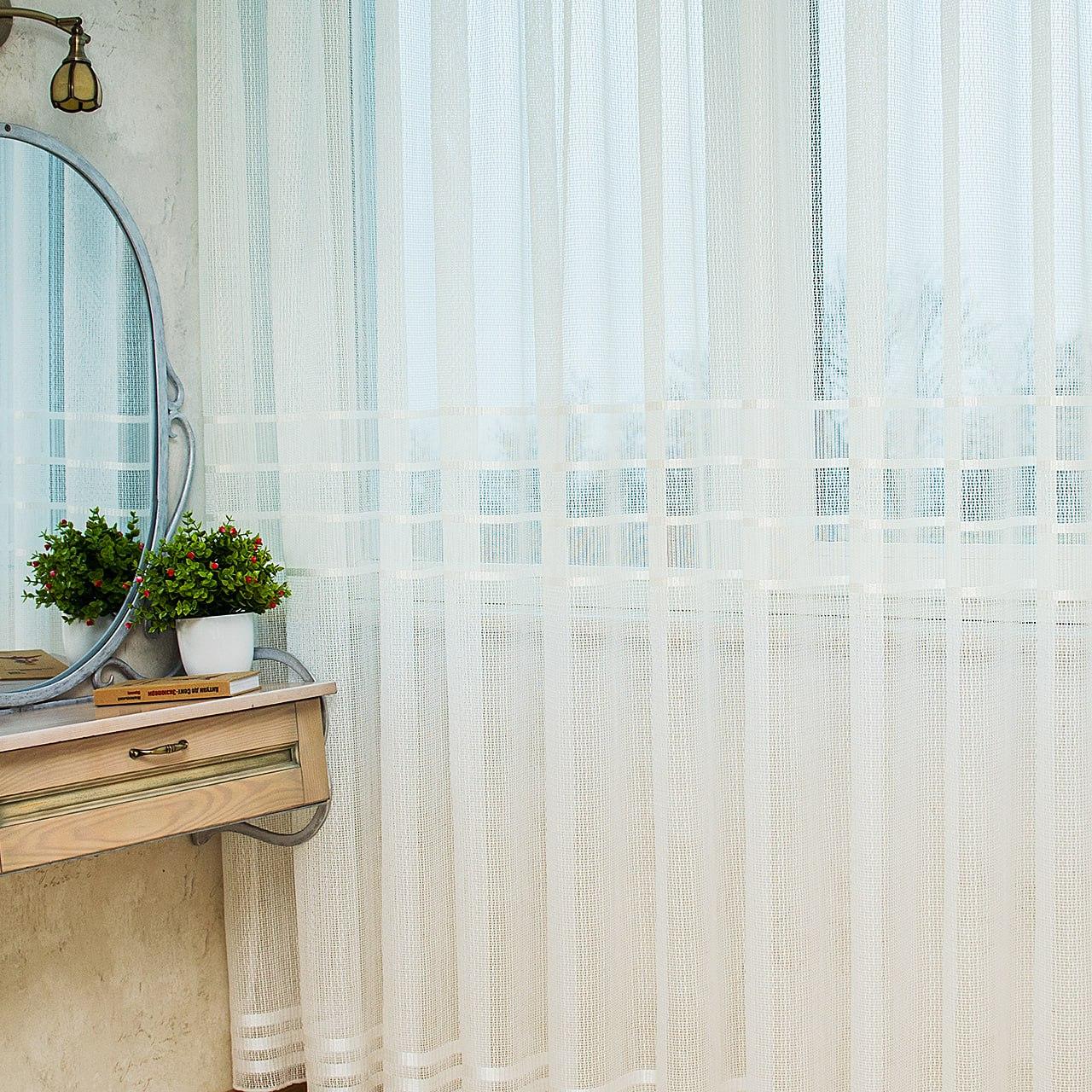 Или заказать пошив готового тюля. В услугу входит пошив тесьмы под крючки (тесьма на карниз трубу или люверсы), обработка всех краев после отреза от рулона, пошив на индивидуальную высоту.